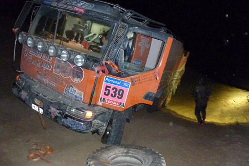 值得一提,根據大會公布的資訊,2011 Dakar Rally從開賽至今,從布宜諾斯艾利斯發車的407輛賽車目前已有127輛退出比賽,只剩280輛還能繼續奔馳在達卡的賽道上,退賽率已達31%,其中卡車組原本起跑的67部比賽車中,目前已有21部車退賽,僅剩下46部車繼續比賽,可見達卡賽事之難度之高確實令人敬畏,每天都需以最佳狀態進入賽道內比賽,稍有不慎別想全身而退!