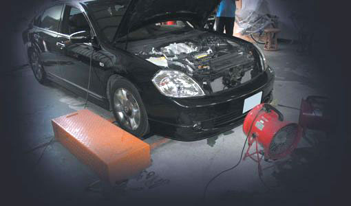 為了證明這個說法,我們特地要求將供氣模式提昇5%,並且將車子開到位於台北縣五股鄉的TTi汽車改裝廠進行拉馬力的試驗,首先Teana 350瓦斯改裝車以汽油模式上馬力機測試,所得數據為輪上馬力230.52hp,引擎馬力265.2hp,與原廠VQ35引擎提供的數據相符,接下來切換為瓦斯燃料系統的一般代步模式,馬力機拉出來的數據輪上馬力為216.24hp,引擎輸出馬力為255hp。