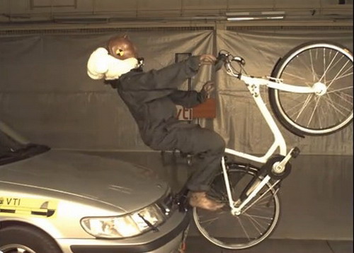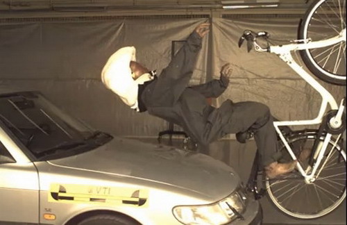 騎機車規定要戴安全帽,但騎腳踏車卻沒有嚴格規定騎乘者一定要戴自行車專用的安全帽,因此許多騎士往往就讓自己的生命安全曝露在各種潛在無形的危機當中,因為一旦遇到白目的汽車駕駛從後頭給你追撞,或者是因為路況不佳而失控摔倒,常常造成身體上的傷害,而其中更以頭部撞擊汽車前擋玻璃,或是摔倒頭部著地等情形,所導致的傷害程度最為嚴重,因此瑞典設計師Anna Haupt及Terese Alstin即著手研發出這款名稱為「Hovding」的頭部安全氣囊,來保護自行車騎士的頭部安全。