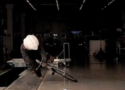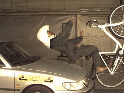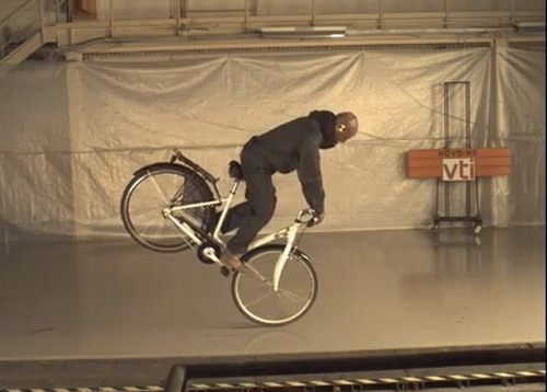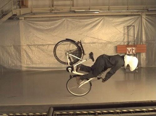 | 單車緊急煞車時,後輪會因慣性作用而翹起向前翻滾。 |