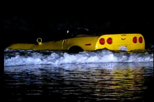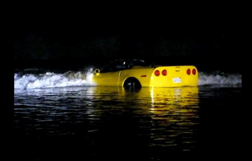 看到這樣的畫面,可別以為是日前梅姬颱風所造成的泡水車喔,而是一輛真的浸泡在「海水」中的車輛,否則車旁怎會有白色的浪花朵朵呢!當然啦,從車屁股一看就知道這是一輛Chevrolet Corvett小跑車,只不過它為何會在月黑風高的夜晚浸泡在海水裡頭呢?莫非是為了測試最新的海陸兩用功能嗎?