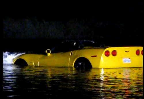 | 沒看錯,這是一輛Corvett跑車浸泡在海水中。 |