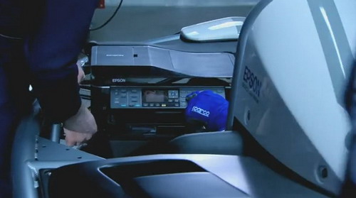 | 工作人員將Epson印表機安裝在Ariel Atom身上。 |