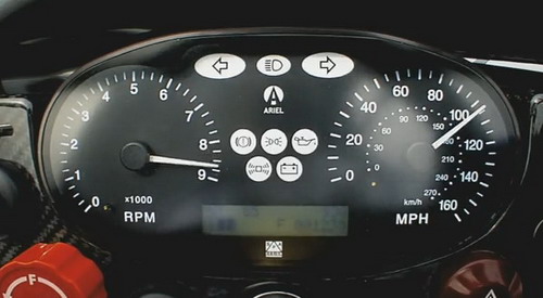 | 看這時速錶指針,就知道Ariel Atom3賽車可是拼全力跑喔。 |