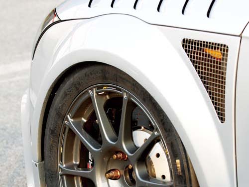 由於四輪抓地所需因此全車葉子板小幅度向外增以加大軸距,如此一來有效提升穩定性還能藉由暴龜設計來突顯流線與斯文的結合之作,雖然前葉子板缺少大面積散熱孔設計,但是小小散熱孔還是能適度提供引擎室與輪拱氣流效應。TTS雖然配置的自動尾翼可依車速來輔助車尾下壓力,但這始終不及固定式尾翼的效能,因此碳纖維尾翼與後下分流器成了車尾空氣力學提升的重點。