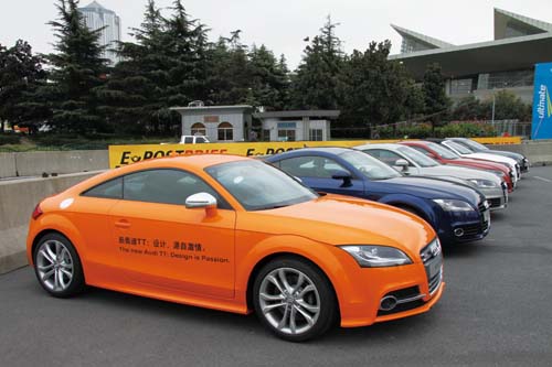 | Audi原廠為了替TT GT4概念車在DTM上海站發表的活動現場暖身,特別將市售版TTS一字排開以壯大聲勢。 |