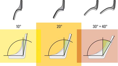 至於HANS另外一種規格分法,則是依據賽車椅背角度,分成10度、20度與30/40度等供車手選擇,請大家參閱圖B。10度規格的HANS主要是提供給椅背角度最直立的賽事車手使用,這類型的比賽有0~400m直線加速賽、拉力賽的導航員或上半身體格較薄的人。