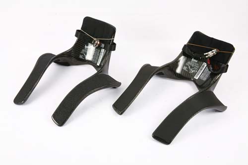 除了規格不同外,HANS還有材質上的差異,有些價格較高者乃是採用碳纖維製成,而價格較實惠者則是使用FRP製成,兩者間的除質感、強度高低稍有不同外,最大的差異還是在於重量上,碳纖維的材質最輕者可到500g,FRP則多半只能減輕到1100g。大家會問:差600g會差很多嗎?以筆者的角度來看其實差不多!因為HANS最後都要被安全帶緊緊地壓在肩膀上,那一點重量實在感覺不出來,所以除非您預算充足,且要求產品質感,否則選擇同樣經過FIA認証過的FRP HANS,同樣可提供足夠的安全防護。