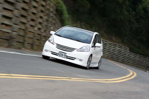 這次龍穎一口氣推出Fit與Swift這兩款車專用的滾動幾何補正和尚頭與轉向補正方向舵桿,而這次實際安裝測試的車款為一輛改裝幅度頗大的VIP式樣Honda Fit,該車安裝了Work 18吋大鋁圈及Nashin六活塞卡鉗,配上338mm的大碟盤,車身高度也降到一拜,視覺效果相當有張力。而此車安裝了一組風評頗佳的改裝避震器,但也許是車為了視覺效果將車高降至一拜又怕輪胎磨到輪拱之故,實際駕駛此車發現阻尼非常的硬朗,彈跳也頗明顯。