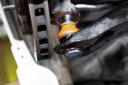 看到這裡相信很多讀者都會一頭霧水,如果想要了解筆者想要傳達的意思,不妨將Hi-Low Kit避震器高度調整到原廠正常的高度去試試看,然後再降到最低去比較一下感覺,在阻尼與彈簧壓縮比不動的狀況下這時候就會發現,原廠高度時的路感會比降低車高後好很多,不但彈跳性沒有降低車高後那麼明顯,也不會有降低後方向盤轉動時澀澀緊緊的感覺。但是會選購Hi-Low Kit避震器的讀者多少一定會降低車高,這個時候如果安裝SWAVE補正套件之後,便能夠讓原本因降低車高而改變幾何角度的底盤系統恢復到原本的角度,如此一來便能大幅改善上面所提到的問題,還原避震器原本該有的效能。