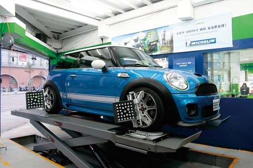 目前SWAVE最新開產品的車款為R56 Mini,目前正安裝在改裝Mini相當有名的長紀店長小古的車上進行測試,測試的專用品同樣為滾動幾何補正和尚頭與轉向補正方向舵桿兩項,方向舵桿與其它車款的差異不大,而和尚頭部分由於Mini本來就設計成可調式,因此SWAVE改裝品不但有30mm的補正量外,還將傾角的調整量加大,但實際安裝後到定位店調整後發現,能夠調整的幅度僅有0.8度(原廠品為0.3度),因此還必需再進行修改與測試,未來希望將能調整傾角能夠達到三度。