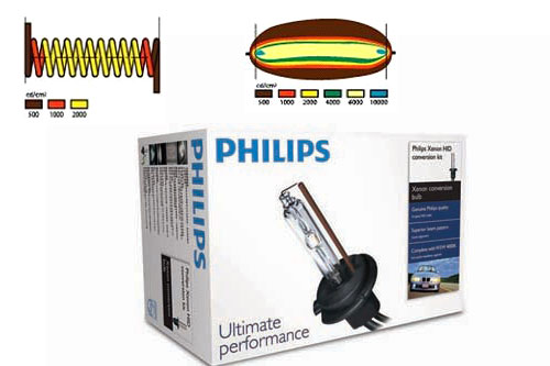 HID不再使用傳統鎢絲發光,而是在石英玻璃燈管內填充包含氙氣的混合氣體,使用電子安定器產生瞬間高達23,000伏特的電壓來激發氙氣,引起放電,進而產生電弧光,提供駕駛人更亮、更白、更遠的行車視野,一般稱為氙氣車燈。