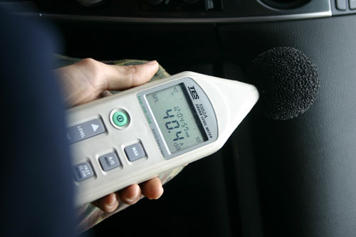 蔡店長表示,一般車輛噪音檢測有幾個基準檢測點,大致分為動態測試與靜態測試,其中動態包含了時速60km/h、80km/h與100km/h三個時速時車內的噪音值;而靜態則為車輛靜止時,怠速與轉速3000rpm時之噪音值,這5個檢測時機也大致涵蓋了一般道路用車的車室狀況,至於分貝計擺設的位置則無規定,只要保持同個測量點即可,因此藉由前述方式所測量到的5個數據當成隔音前後比較的定因,最具參考價值。就分貝計顯示,改裝前的數據如下:60km/h:dB、80km/h:dB、100km/h:dB、怠速:dB、靜止3000rpm:dB。