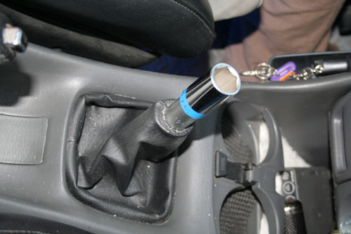 約過了30分鐘左右(依接著產品不同,可能需要更久),確定中央灌漿部分已經完全硬化,就要利用電鑽來攻螺牙了,小心攻牙螺絲口徑別選擇太大,確保完工後能旋緊於排檔桿上。