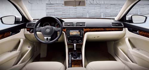 由於美規Passat的車身長度較長,車內空間也因此被放大,歐規Passat的內裝無法直接套用,因此VW為美規車款重新設計了內裝;方向盤、儀錶板、音響空調面板與排擋座等組件雖然沿用歐規版本的既有組件,但包括門板、儀錶板上半部以及環艙飾板等部份則與歐規版本設計有所不同。另外,美規Passat則保留了傳統機械式手煞車,不像我們先前試駕的歐規車款已經換上電子控制式手煞車。