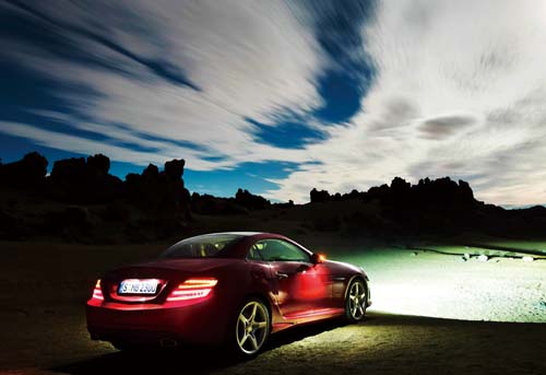 融合過去1950年代190SL的經典元素及前衛超跑SLS AMG的時尚風貌於一身,這部全新第三代SLK的一切都跟M.Benz保持著密切關係,它絕對是街頭最耀眼的明星,將繼15年前第一代SLK掀起的風潮而在敞篷圈內呼風喚雨。