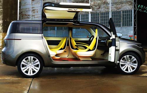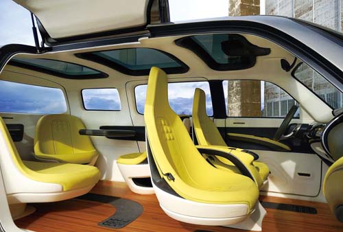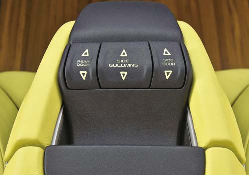 | 乘客座側的鷗翼車門,搭配無B柱設計,提供最大的自由;特殊的座椅配置,不但提供最多達七人的空間配置,而且座椅還可360度旋轉。 |