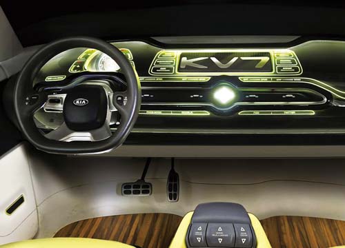 | 有趣的是,Kia KV7導入了時下流行的高質Lounge設計,結合了亮眼的五具可360度旋轉座椅(最多可承載6-7人),以及車內大量採用的原木裝潢設計,還有前後共有三具天窗設計,已經算是碩大的車身更打造出寬敞無比的車室空間,與超明朗兼顧溫潤氣氛的空間,而且更採用了已經在IT領域具備多項殺手級應用的多功能觸控操作與顯示介面,而駕駛控台更會在車輛啟用時靠向駕駛人,引擎熄火則會自動移回,提昇駕駛艙的空間感與上下車便利性。 |