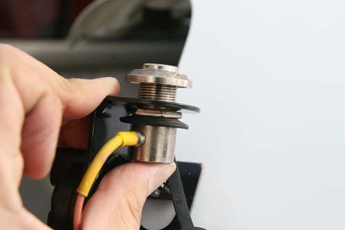 | 先安裝天線端的螺絲座,其上會有一顆用來對鎖的中空螺帽,先拆下來等螺絲座穿過固定座後,再鎖緊就可讓螺絲座牢牢的固定在其上。 |