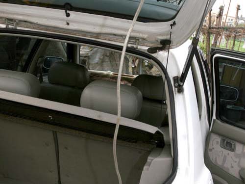 | 由於掀背車的尾門開啟角度大,加上開口不能有線材存在會影響取物的方便性(像圖中所示),因此如何佈線考驗著車主的巧思,筆者以最簡單的方式來介紹給大家,如果有更好的點子不妨試試。 |