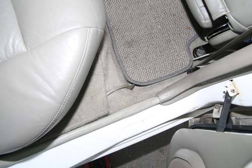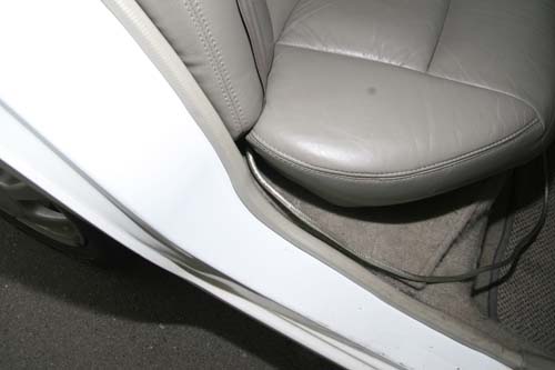 | 可利用椅面下方的地毯與腳踏墊來隱藏傳輸線,雖然有些地方還是會看到此線,不過只要不影響出入車,筆者倒是覺得無所謂,當然若想看不到線的話,大費周章拆除門檻膠條與飾板來藏線倒也是可以。 |