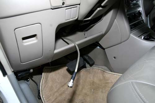 | 接著要將原本位於車身右側的傳輸線,從後座腳踏墊下方拉到車身左側,再經由駕駛座椅下方拉到中控檯附近,這時候傳輸線夠不夠長就很重要。 |