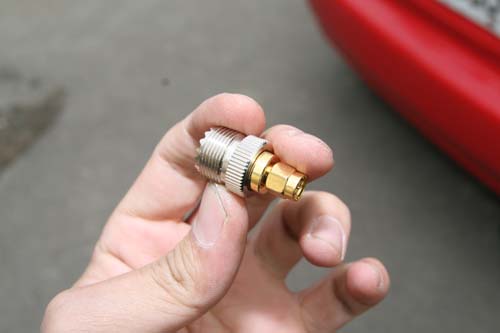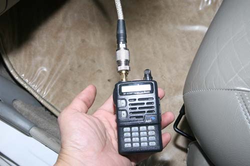 | 取出手扒雞將原廠天線轉下,由於筆者使用的傳輸線接頭為車機規格,要使用在手扒雞上還需額外裝一顆轉接頭才行,這顆轉接頭的價格從80~100元不等,購買前先告知店員手扒雞型號,比較不會買錯。 |