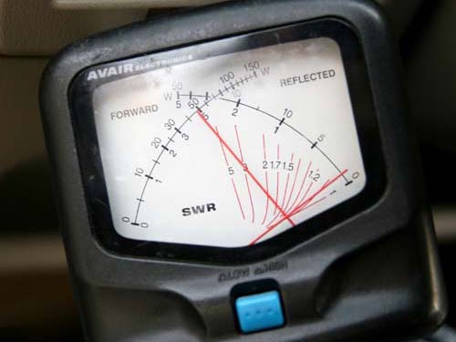 | 天線安裝完成後,如果能借得到駐波比錶來檢測天線產生的反射波程度,便可進一步確認天線安裝過程無誤。駐波比錶右側指針為反射波與駐波的情形,愈低愈好,如果數值太高就要檢查天線角度與線材品質了。 |