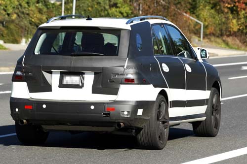 就狗仔此次所拍到的照片細細推敲,新一代ML的車身比例與尺寸似乎比現行款還要小了些,最明顯的地方就是更短的車尾結構,看起來比現行款更加緊湊,而C柱與後葉子板部分所加強的偽裝措施就像是此地無銀三百兩,讓人更加注意這個部位,車尾側面的獨立車窗造型應該跟現行款有所出入,後葉子板有可能會採用與E-Class相同的肌肉狀線條,以保有一貫的制式家族風貌。