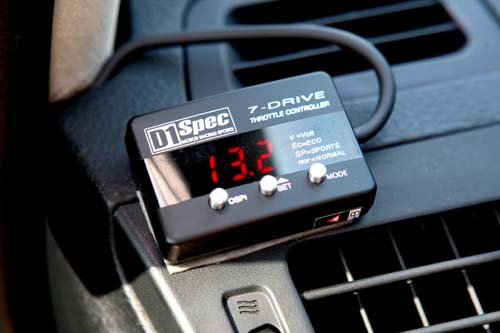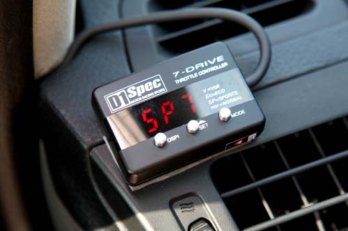 上個月筆者試駕到一輛VIP式樣的Fit,該車裝載著225/40ZR18吋胎圈與巨大的前六後四活塞卡鉗加上345mm的碟盤,在動力並未提升的前提下,開起來理應會有重拖的現象,但是此車非但沒有力猶未逮的感覺,反而比起原廠車還要好上不少,駕駛完這輛車後筆者很好奇的打開引擎室查看是否有「偷改」什麼怪機絲,但是此車僅在進氣部分加以強化而以,最後終於發現了讓這輛車的加速反應比原廠車還要好秘密,那就是「電子油門加速器」。