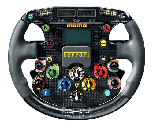 相較於量產車所使用的方向盤,F1賽車所使用的方向盤有著截然不同的設計概念,為符合競賽與輕量化的需求,F1方向盤將儀錶板、電子控制、動力、變速箱與懸吊系統等項目在內,所有跟車輛控制功能有關的操作幾乎都集中在這塊面積極小的平台之中,因此造價相當昂貴之外,所有的按鍵與功能設定也會依據每一年賽事規則的更動與新款賽車的設計而有所更動,因此每位F1賽車手在接觸新年度賽車時皆須適應新功能之外,當然車隊也會依據每位車手的習慣而量身打造個人專屬的方向盤。