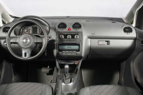 | 簡約務實的車艙大原則依舊可以在New Caddy上見到,只是整體的質感更上層樓。格紋編織的不織布椅、三幅跑車造型方向盤、液晶多功能行車資訊電腦等,讓Caddy轉型成自用MPV路線。 |