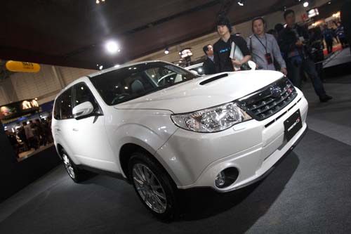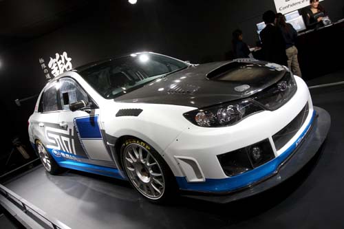 今年東京改裝車展絕大多數的車輛都是以環保及油電混合車做為主力,由此也可看到日本車輛取向的變化,不過Subaru則是選擇以多輛純競技車輛做為展示的重點,其中更以塗裝華麗的Gr.N拉力賽車、紐柏林24小時耐久賽車及Legacy B4 GT300車輛做為展示主軸,而值得一提的由GVB做為基礎打造的紐柏林24小時耐久參賽車,2010年賽事中更是奪下優異的該組第四位成績。另外市售車輛方面,STI則是推出目前旗下市售的GVB、Legacy、Forester及Trezia,而這些車輛更是在經過STI及tS(tuned by STI)所洗禮下,運動性能更是大幅提昇,由其實去年開始STI主打的新品牌tS,除了堅持S車系及R車系一貫STI所堅持的高運動性特色外,tS車型更是保有走行能力外,更是增添了走行質感,也因此讓更多必須考量家人又不想束縛在一般原廠車的車主,一個與眾不同的選擇。