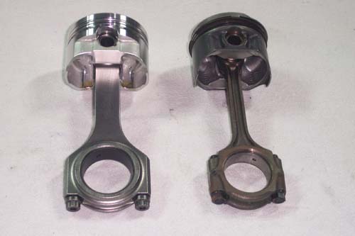 | 若以同材質與製程來比較的話,H斷面的連桿強度較佳,判斷的方法是將連桿立起觀察其橫切面,即可辨別H或I斷面,如圖左側為斷造H斷面連桿,右側為原廠鑄造I斷面連桿。 |