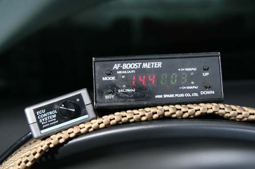 | 空燃比值可透過排氣中的燃燒後物質來加以診斷出來,而能偵測出空燃比值的儀器即為空燃比錶,是調校供油電腦時不可或缺的工具。 |