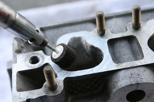 一般我們常說到進排氣拋光,指的是汽缸頭上的進排氣道平面的研磨,之所以須如此的原因在於,市售引擎大量生產,成本的控制為第一要務,故生產時絕不可能細細講究,難免有些表面的不光滑或孔室歪斜、大小不均等情況出現。為了處理這些問題,就需要使用各種研磨器材將進排氣道重新加工處理,去除表面的粗糙,進而施實鏡面處理。如此一來空氣所受阻力減至最低,進排效率才能大幅改善,不過自然進氣引擎在進行拋光程序時,也需注意不得將進排氣道表面研磨得過於光滑,需保留一定程度的粗糙面,目的在確保引擎於節氣門全開且高轉速時的進氣脈衝依然存在,如此才能達到拋光的效果。