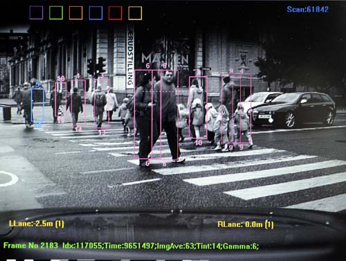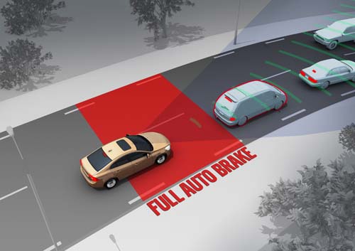 | PDFAB(Pedestrian Detection with Full Auto Brake)行人偵測及完全主動煞車系統:透過水箱護罩後方的雷達感應裝置及安裝在前擋風玻璃的攝影機,監控前方路況與人體輪廓,會適時警告駕駛並介入煞車控制,若碰撞擊將發生會自動全力煞車。 |