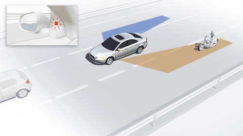 | BLIS(Blind Spot Information System)駕駛視覺盲點資訊系統:透過兩側後視鏡的攝影機來偵測後方視線死角,只要車速超過10km/h以上就會自行啟動,一旦發現移動中的車輛進入偵測範圍內,位於車內A柱的燈號就會發出警告訊號。 |