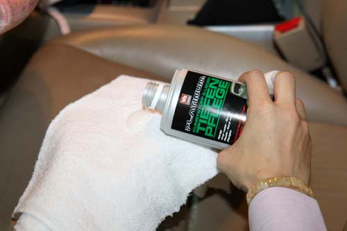 相信很多車主一定有跟筆者相同的困擾,那就是車內內裝及皮椅最難保養照顧了,但是東西用久了一定會髒,久了就習以為常,但總讓人看了就很難過,先前提及的鉑金鑽車內亮光保護膜就在此時派上用場了,相同原理,使用前將需要保養的皮件或內裝先稍做清潔擦拭乾淨,再以軟布或是海綿球均勻塗抹,等待乾燥約十來分鐘後,再以乾抹布擦拭便可。
