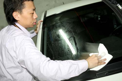 | 塗抹過程請以畫圈方式操作,使其塗劑有效著附於擋風玻璃上,塗抹完成後,再以濕抹布擦拭,最後擦乾即可。 |