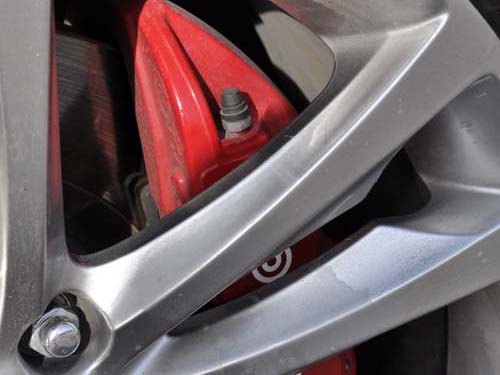 | 19吋輪圈內的Bermbo煞車卡鉗提供本車稱職的制動力表現。 |