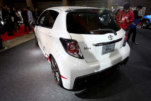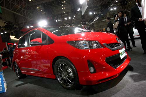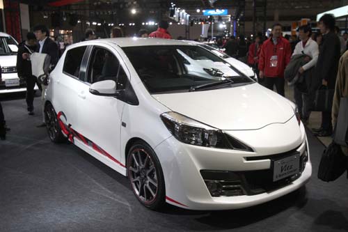 | 2011年的東京改裝車展,三代目的Toyota Vitz/Yaris在經過G`s及Modellista的改裝過後,都散發出二代目所沒有的運動氣息,不過說實在的三代目Vitz/Yaris原廠只要換個框降低車身就很有味道。 |