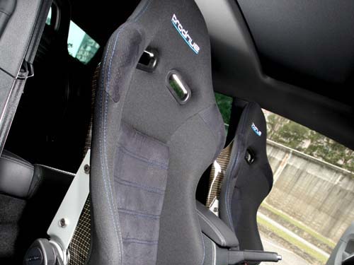 煞車系統部份,為對應車主多於平面及高速道路行駛需求,面對道路多變狀況,在前輪制動力部份,選用AP PRO 5000 六活塞卡鉗,搭配Projectμ來令片,面對此煞車系統設定搭配,不難看出車主對於煞車要求有多麼強烈。進排氣系統部份,先以進氣歧管APR Carbon套件配套,在排氣管部份,也是同品牌APR RSC全段排氣管加入,目前正在收集相關訊息及其他店家施作動力升級後的效能,但可以相信一旦該車進行動力升級後,其整體表現必定更加亮眼。