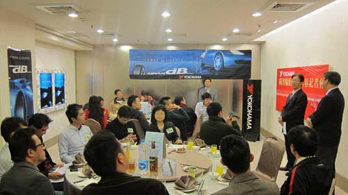 | 橫濱輪胎2011年新春酒會上各家媒體專心聆聽國枝董事長對於未來發展說明 |