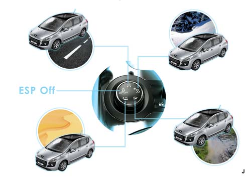 | 透過電動馬達驅動後輪;3008 Hybrid4共有「一般公路」、「雪地」、「泥濘」、「沙地」以及「ESP Off」等不同驅動模式可供選擇。 |