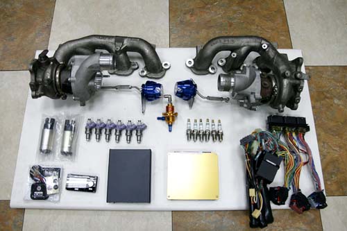 | GT700R套件包含渦輪本體、Blitz Actuator×2、Denso 800c.c.噴油嘴×6、Denso 280L汽油泵浦×2、HKS R35專用火星塞×6、Sard汽油調壓閥、HKS F-Con V Pro 3.3 for R35專用可程式電腦(包含可變汽門控制電腦與專用線組)與R35專用HKS EVC V增壓控制器。 |