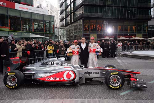 | McLaren MP4-26選在德國柏林的Vodafone總部發表,顛覆傳統的進氣口設計非常吸睛。 |