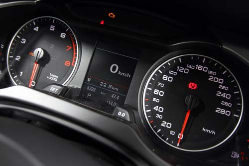 座艙整體鋪陳維持Audi車系一貫的精緻質感,並以沉穩的黑色基調搭配適量的鍍鉻點綴與點狀鋁合金飾板,提供濃烈的科技氛圍。