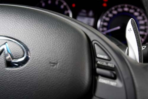 至於G25則是以濃厚的日式典雅設計風格取勝,無論是視覺效果或是實際乘坐都能擁有令人放鬆的舒適感受。但相較於其他車款將換檔撥片設置於方向盤(與方向盤連動)的作法,G25則是唯一採用將換檔撥片固定於方向機柱的方式(並不與方向盤連動),提供駕駛人更加直覺的左降檔、右升檔之手動換檔邏輯。