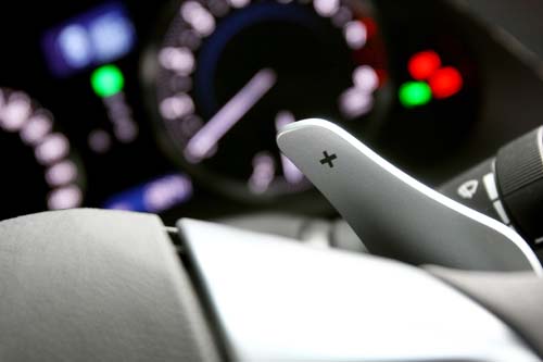 | 方向盤後方設置換檔撥片(左降右升),提供更多的駕駛樂趣。 |